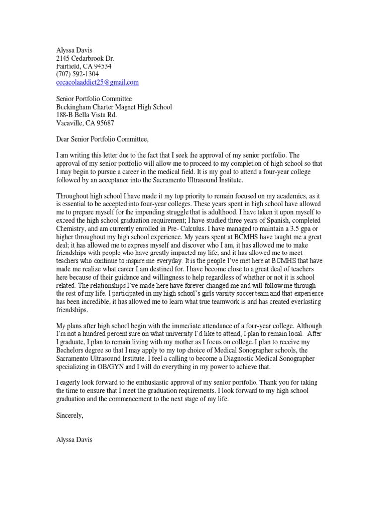 Senior Portfolio Cover Letter : It should tell a compelling story about who you are, what you have accomplished, and why the potential employer should want to meet you.