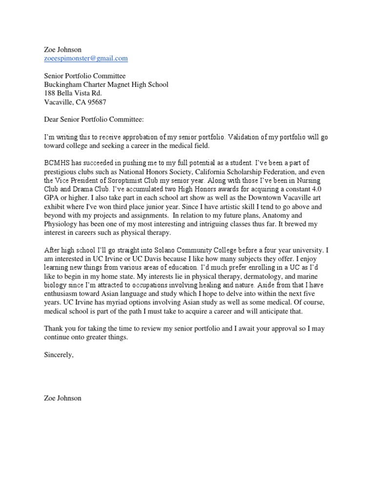 Cover Letter Senior Portfolio from imgv2-2-f.scribdassets.com The area in bold at the top comes directly from the employer's needs, based. Sep 17, 2020 · a cover letter template is a helpful way to format and organize your letter. Download the photographer cover letter template (compatible with google docs and word online) or see below for more examples. So a cover letter is kept short and sweet while an application letter may go into a bit more detail about why you are a good fit for the position. Feb 22, 2021 · a portfolio cover page is the top page of your portfolio that gives hiring managers an idea of what they can expect to find inside your portfolio. A personal mission statement for a resume is one of the most crucial elements of your application because it helps the recruiter or hiring manager identify the strategic value you might add to the company. Feb 27, 2021 · the letter of inquiry is different from a cover letter because a cover letter is for a job that is already posted. This is an example of a cover letter for a photographer.